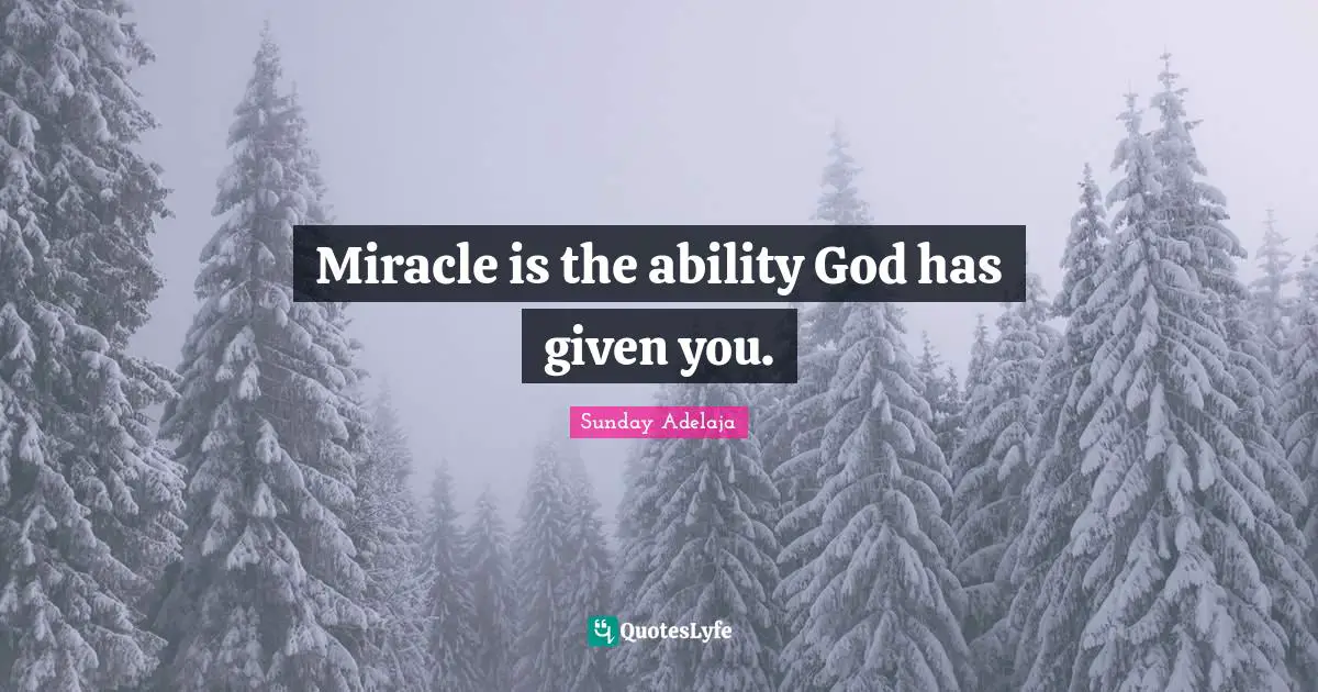Thank you for giving me the strength to carry forward with my academics. I almost gave up but god gave me hope. A miracle is an extraordinary event wrought by god through human agency, an event that cannot be explained by natural forces. Never stop believing in hope because miracles happen everyday anonymous. Enjoy reading and share 48 famous quotes about god do miracles with everyone. A joyful heart is good medicine, but a crushed spirit dries up the bones. Is anything too… hearing this, jesus said to jairus, don't be afraid; 1 life is a series of thousands of tiny little miracles. One is as though nothing is a miracle. Evidence of god exists in creation, morality, human experiences, science, logic, and history. Quotes about miracles can inspire us to open our eyes to the miraculous wonders all around. God will make a way when there seems to be no way. Every cubic inch of space is a miracle..